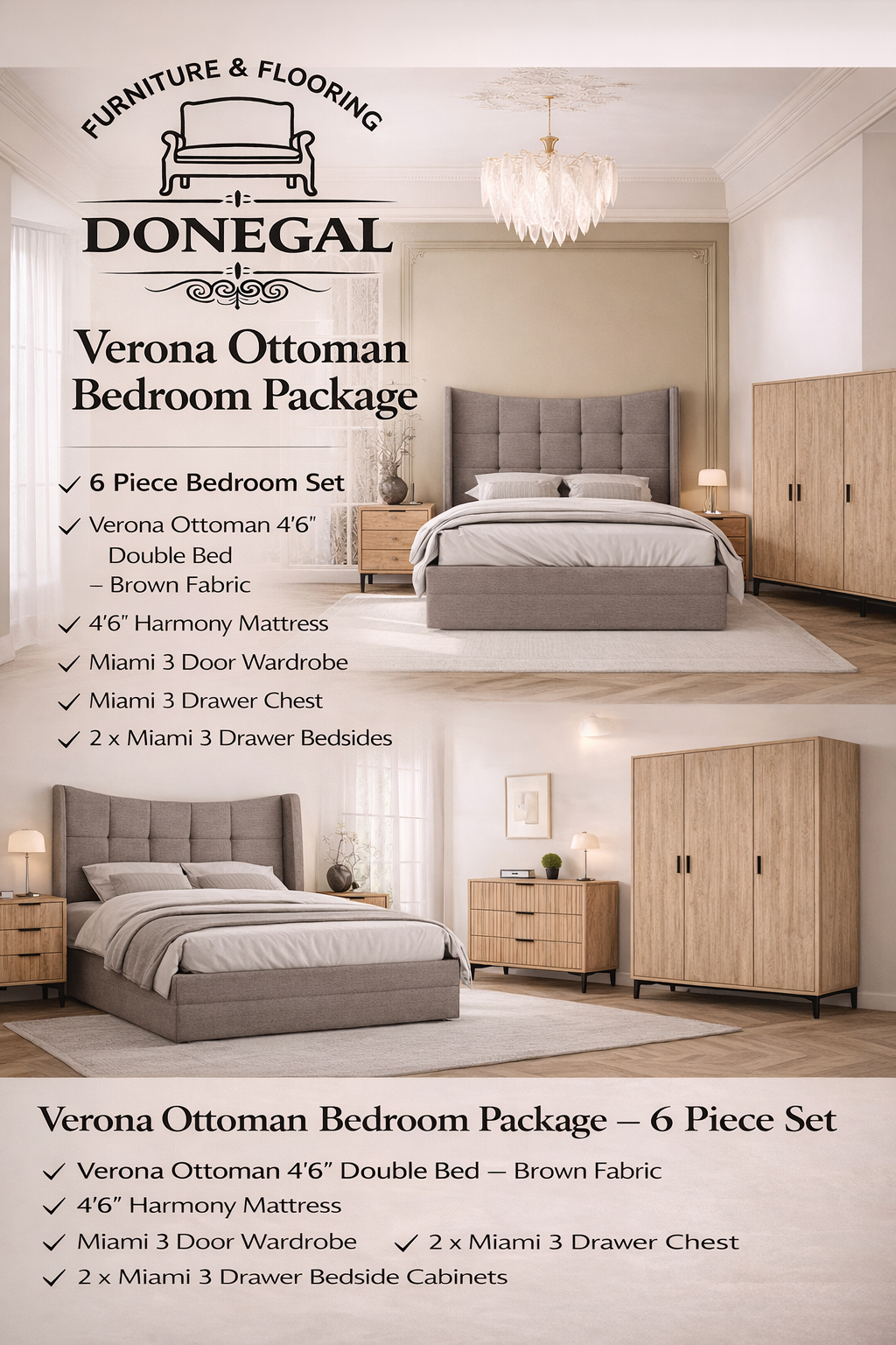 6 Piece Verona Ottoman & Miami Bedroom Set