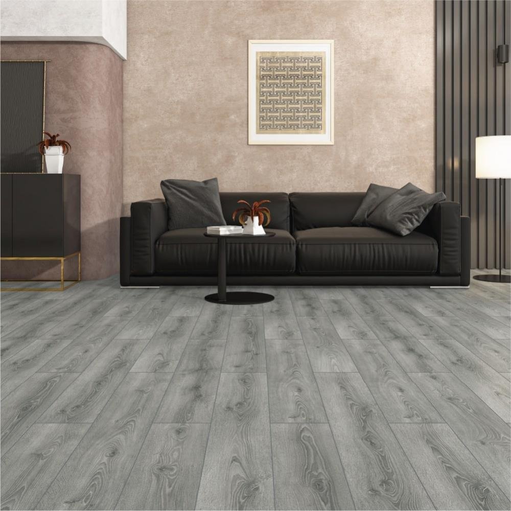 The Art Floor Prime Akashi AU010 Flooring features a contemporary grey wood-effect finish with subtle grain detail, creating a clean and modern look that suits a wide range of interior styles. Its neutral tone makes it easy to pair with both light and dark décor schemes.