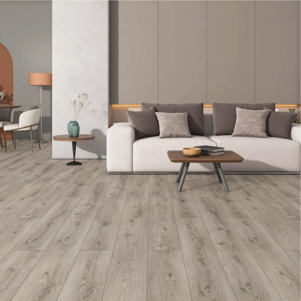 Constructed with a durable 8mm laminate core, this flooring is designed for everyday residential use. It is well suited to living rooms, bedrooms, and dining areas, offering a practical balance of comfort, durability, and easy maintenance.