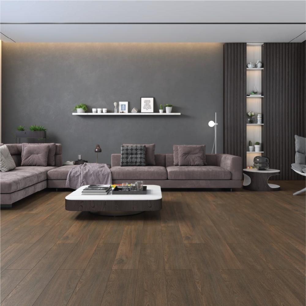 The Art Floor Sunex Cuba Oak AXS03 Flooring features a rich, dark wood-effect finish that creates a bold and elegant atmosphere in any room. The deep tones and pronounced grain detail add texture and warmth, making it ideal for high-traffic areas where style and durability are key.