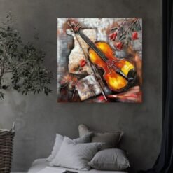 Introducing the FAM-0328, an exquisite piece of 3D Metal and Wood Wall Decor that brings a touch of rustic charm and modern artistry to your home. This stunning 80×80 cm wall art features a musical masterpiece with an eye-catching violin and scattered roses, meticulously designed to captivate and inspire.