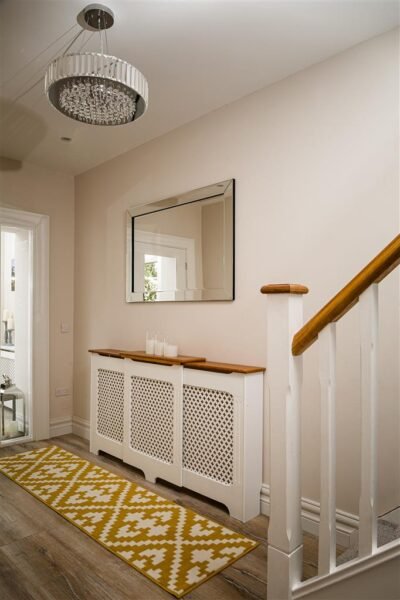Pre-finished white & Oak Veneer Two Tone Radiator Cover.