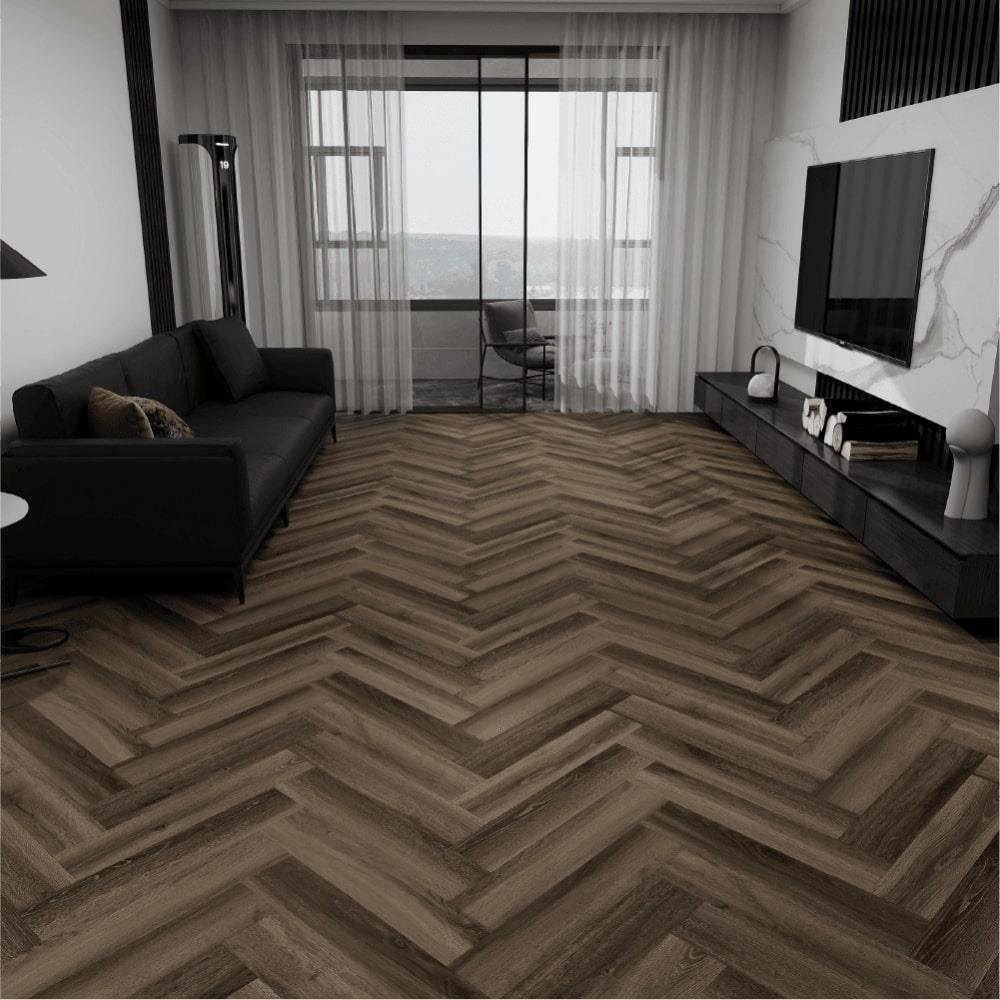 Rated AC4 for durability, the Decora herringbone floor is suitable for busy living areas and is compatible with both water and electric underfloor heating systems, combining everyday performance with modern comfort.