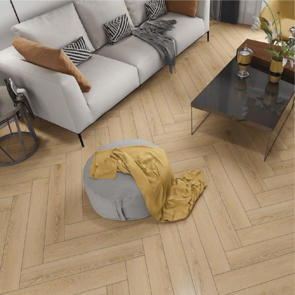 The Decora 8mm Herringbone Natural Oak 9912 flooring delivers classic parquet styling with the timeless warmth of natural oak tones. The traditional herringbone pattern adds elegance and visual interest, creating a refined finish suited to both contemporary and traditional interiors.