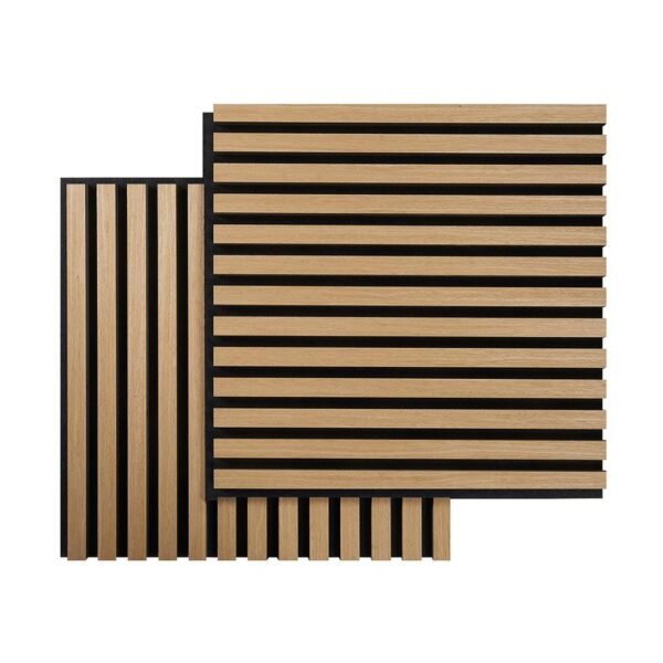 The square panels allow you to arrange the panels in fields on all sides or edges or use one or two for a decorative and unique expression. Square panels can be installed with screws or mounting adhesive. The panel is made of genuine wood and has a 9 mm polyester backing, made from recycled polyester. Each package contains two panels measuring 520x520x22 mm.