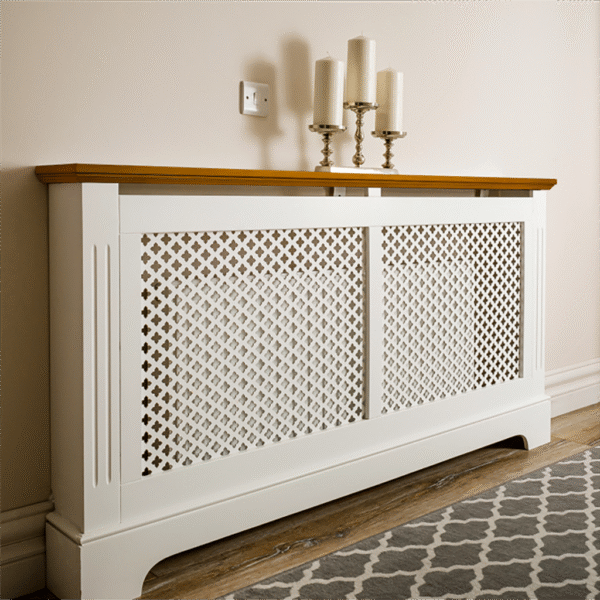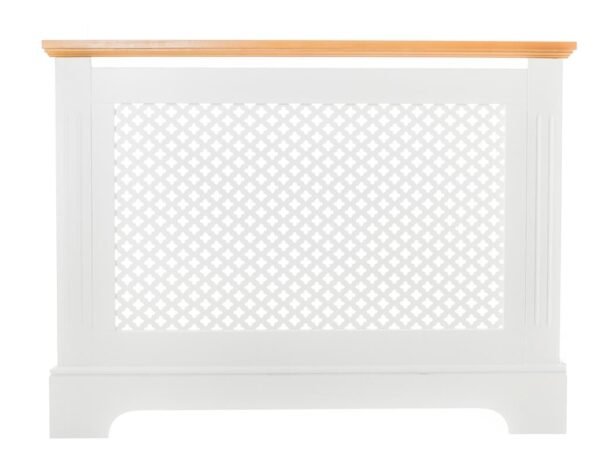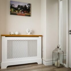 Pre-finished white & Oak Veneer Two Tone Georgian Radiator Cover.