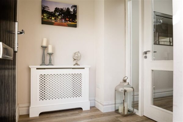 Pre-finished white luxurious Georgian style Radiator Cover.
