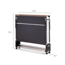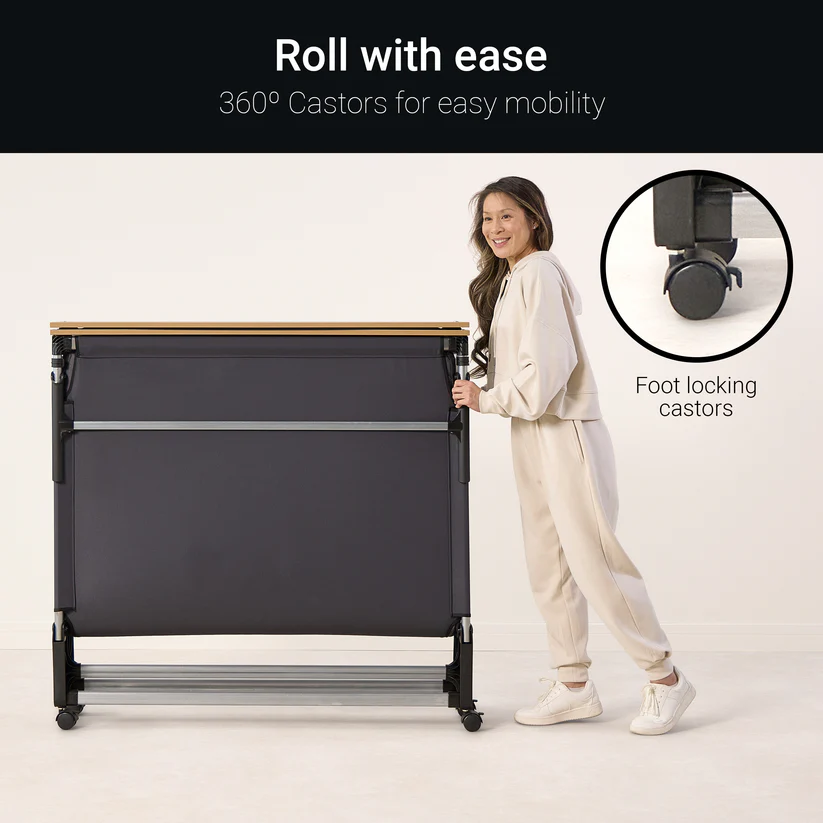 Designed for convenience, the GP120 opens and folds away in seconds and includes 360-degree locking castors for easy movement and positioning. When not in use, it folds into a compact upright position for space-saving storage.