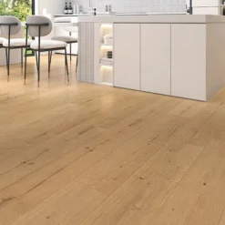 This collection features advanced water-resistant technology, designed to protect against everyday spills and surface moisture when cleaned promptly. While not fully waterproof, it offers significantly improved resistance compared to standard laminate flooring, making it suitable for kitchens and other areas where occasional spills may occur.