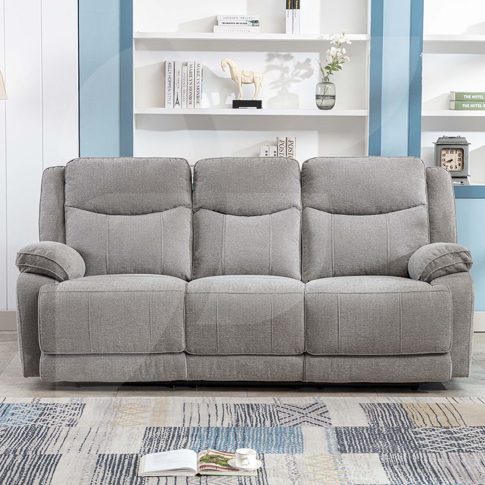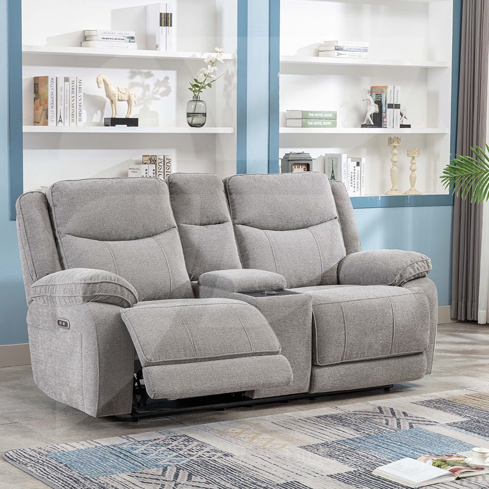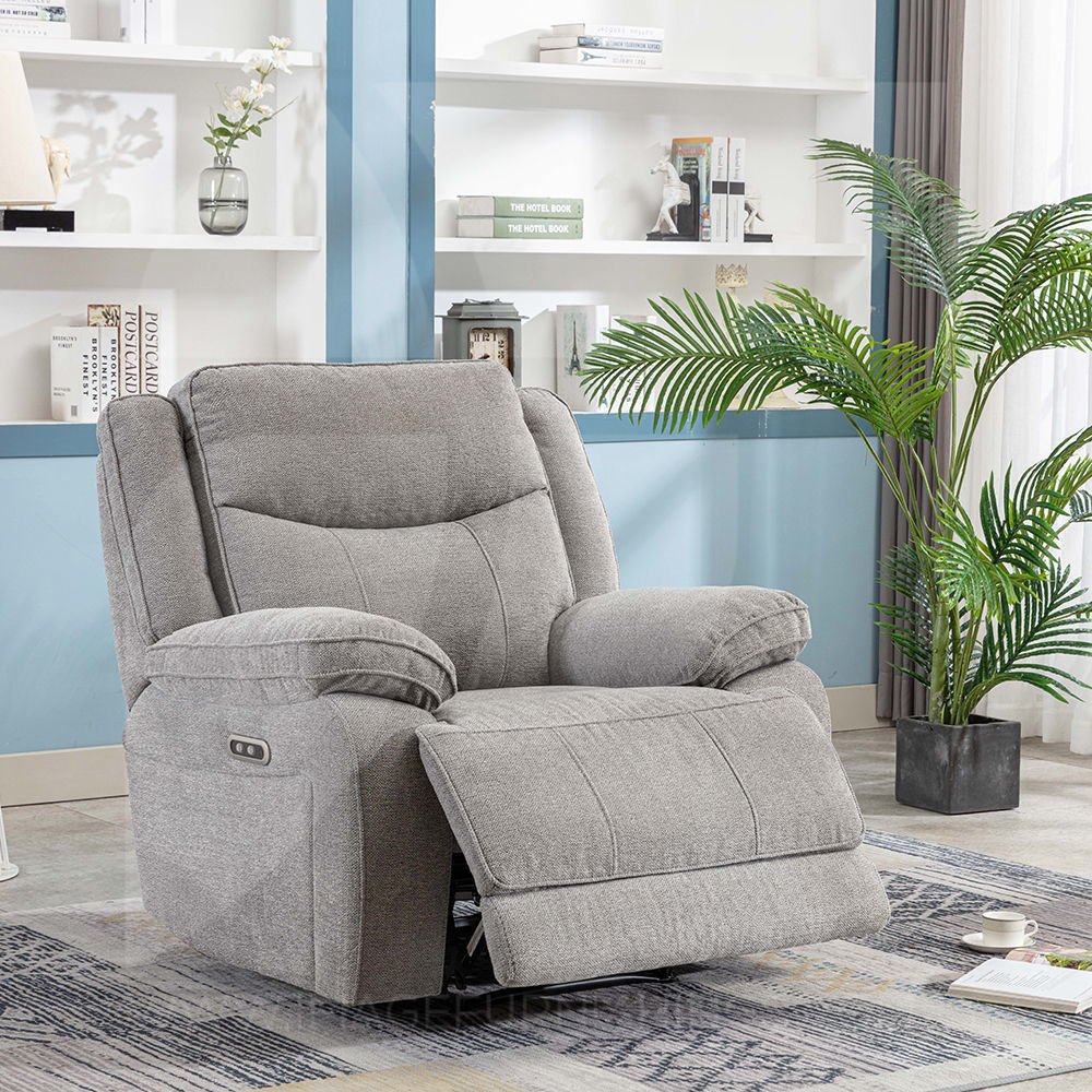 With soft grey fabric material combined with electric motion and a wireless charging port, the Herbert brings exceptional comfort and style to any living space. It includes USB charging capabilities, and the chrome finish button functions on the side make it effortless to relax and unwind after your day.