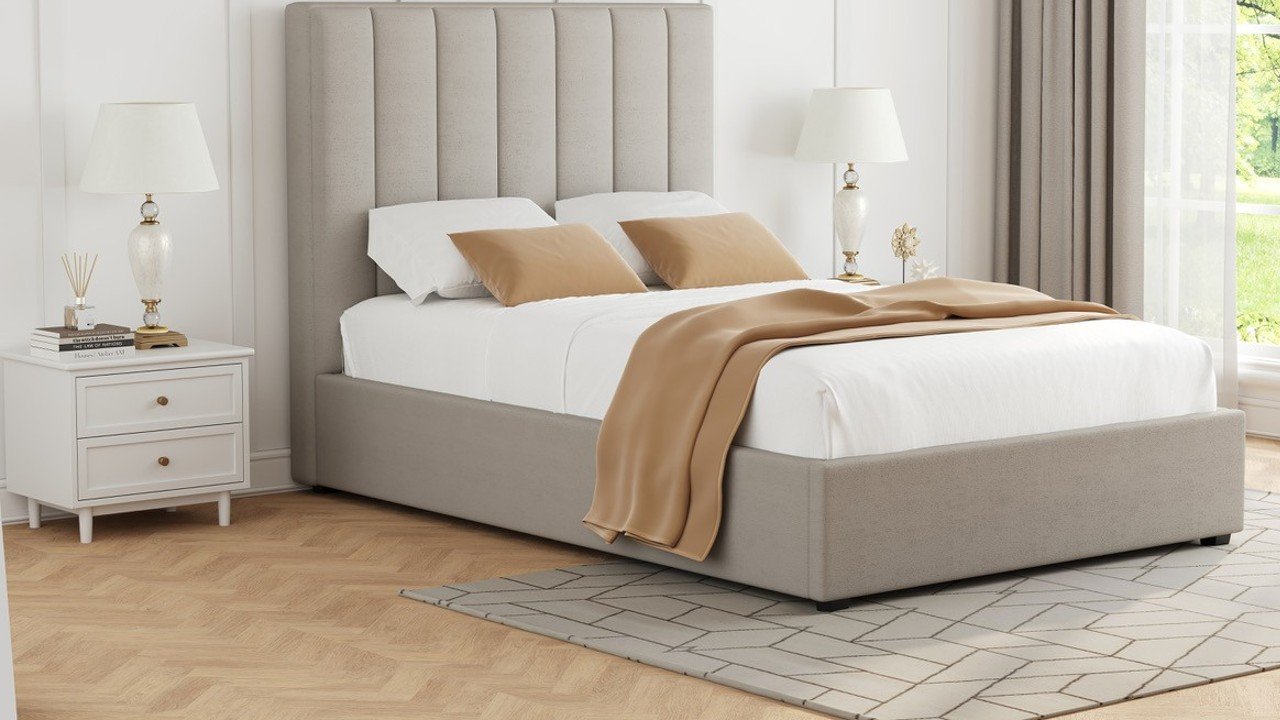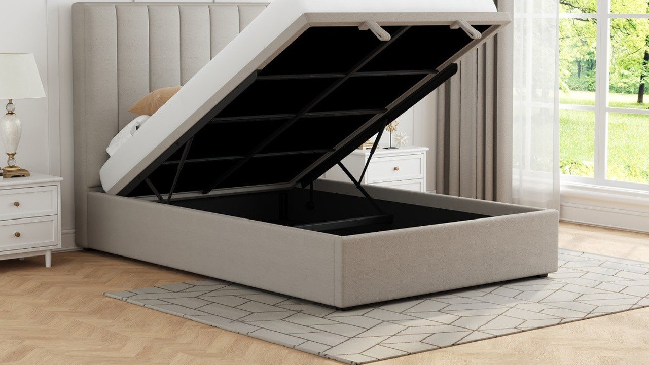 The Holly Storage Bed combines modern style with practical functionality, making it a perfect addition to any bedroom. Upholstered in a soft beige fabric, it offers a clean and contemporary look that suits a wide range of interiors.