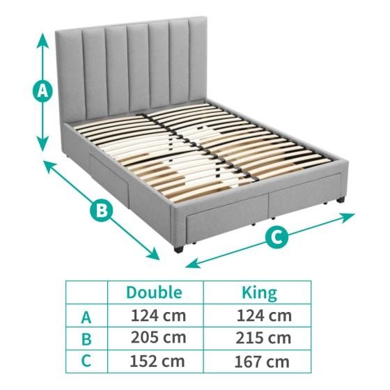 4ft6 Double: 152 cm (W) × 205 cm (L)