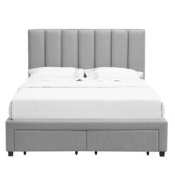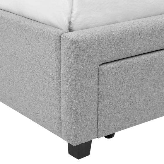Upholstered in a soft, light grey fabric, this bed frame brings a clean, contemporary look that effortlessly complements a wide range of interior styles. Its simple, understated design makes it the perfect foundation for creating a calm and inviting sleep space.