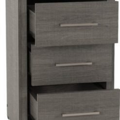 The Lisbon 3 Drawer Bedside Chest combines modern design, durability, and everyday practicality, making it a stylish addition to any contemporary home. Black Wood Grain Effect