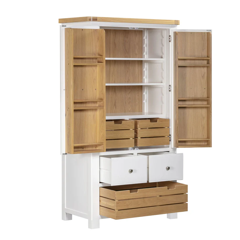 Crafted from high-quality engineered wood with a durable oak and white wood-effect finish, the Mayfair Larder is built for everyday use while offering a clean, consistent aesthetic across the Mayfair collection.