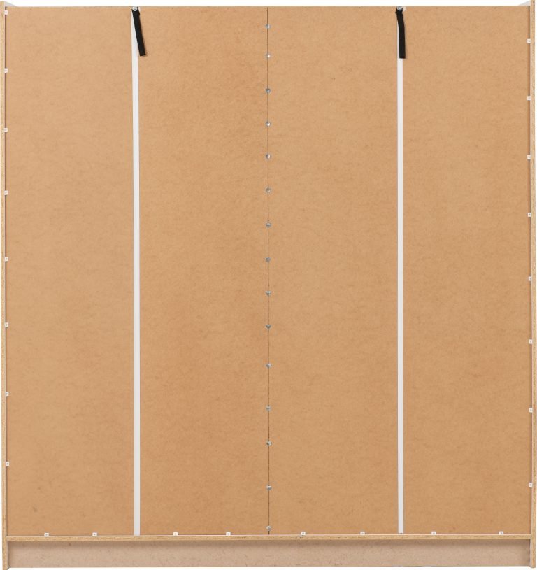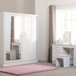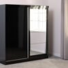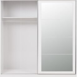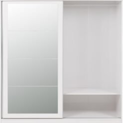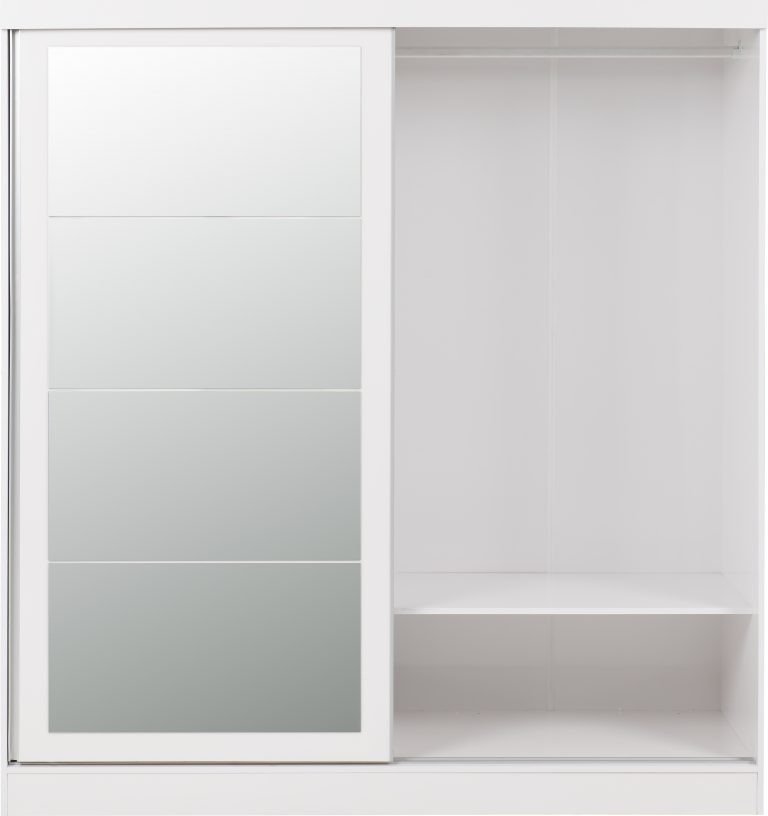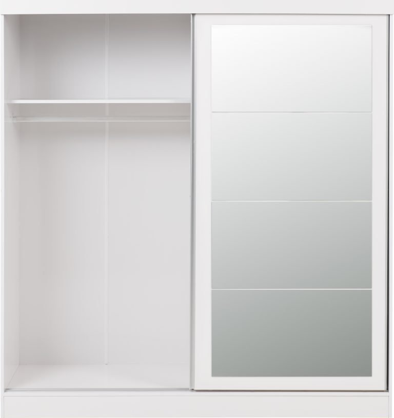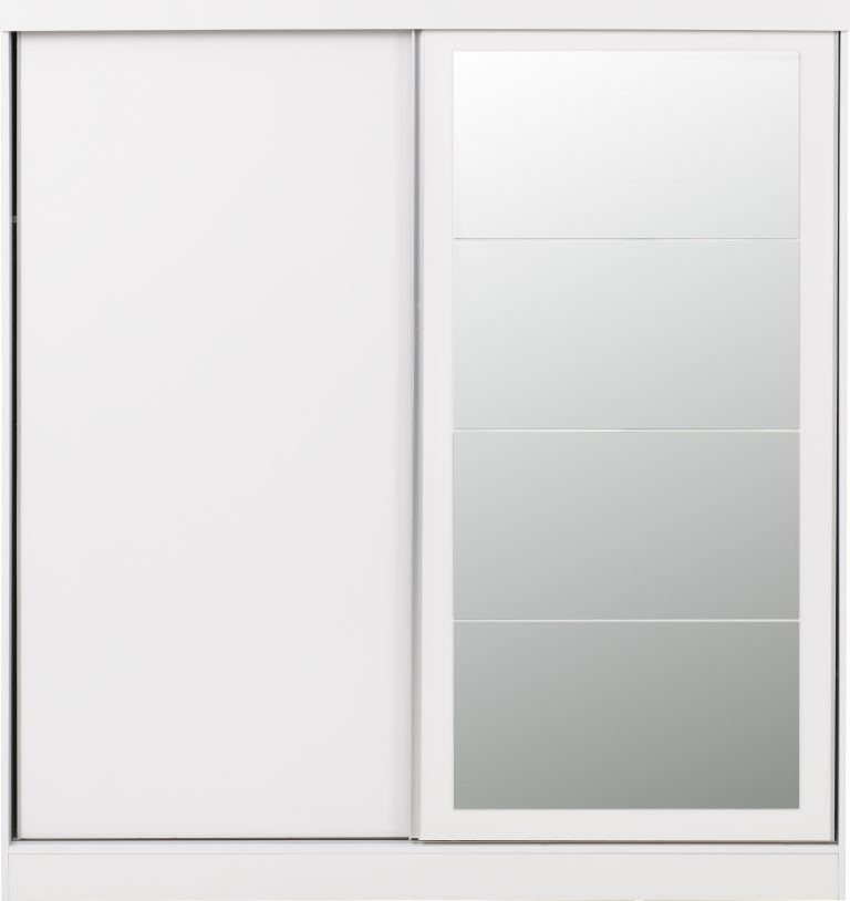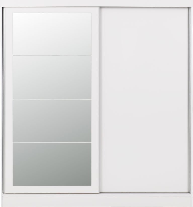 COMPOSITE BOARD FRAME, PLASTIC VENEER, MDF BACK PANEL, METAL DOOR DETAILS, METAL HANGING RAIL, PLASTIC DOOR DETAILS, PLASTIC BACK PANEL STRIP, PLASTIC FEET, MIRRORED GLASS