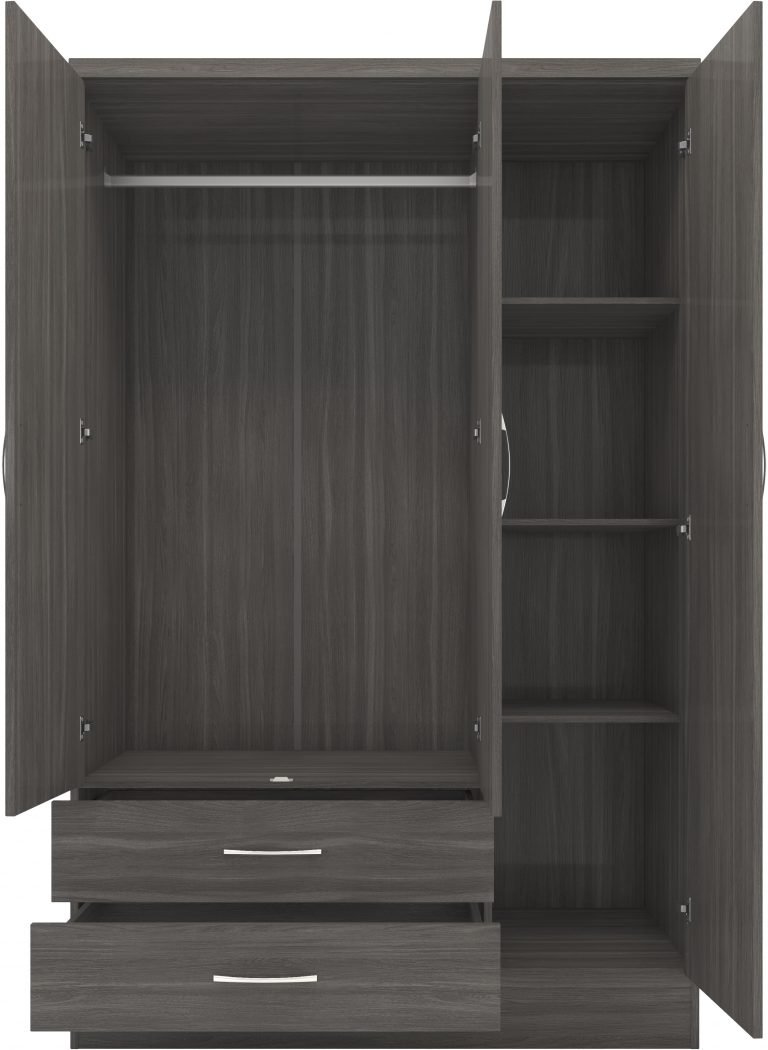The Nevada 3 Door 2 Drawer Mirrored Wardrobe combines modern design, durability and everyday practicality, making it a stylish addition to any contemporary home. Black Wood Grain