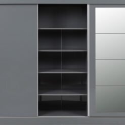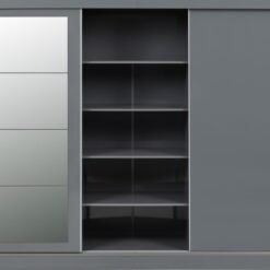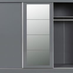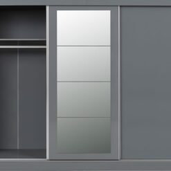 COMPOSITE BOARD FRAME, PLASTIC VENEER, MDF BACK PANEL, METAL DOOR DETAILS, METAL HANGING RAIL, PLASTIC DOOR DETAILS, PLASTIC BACK PANEL STRIP, PLASTIC FEET, MIRRORED GLASS