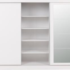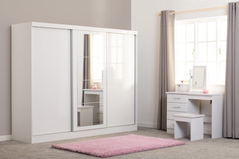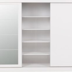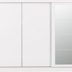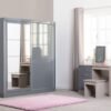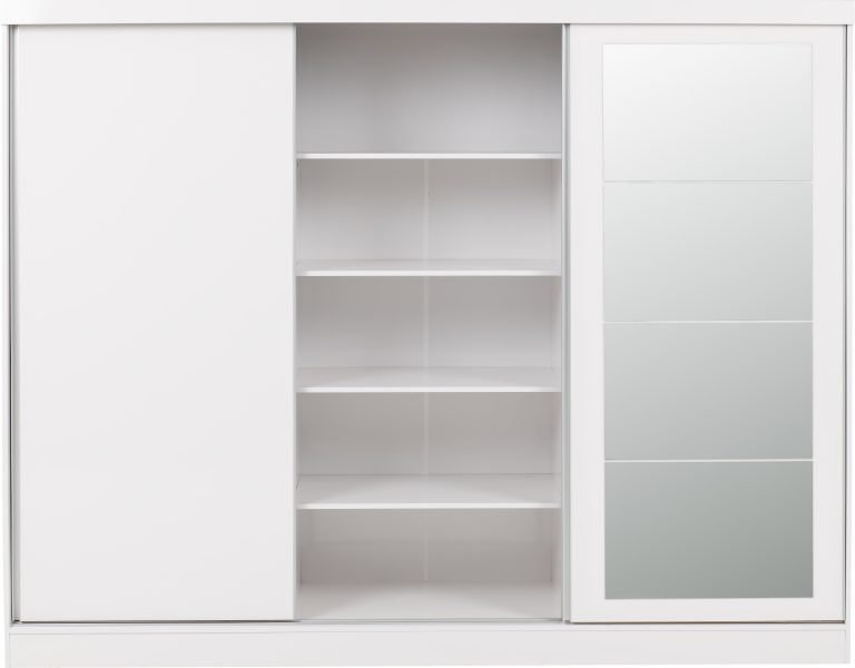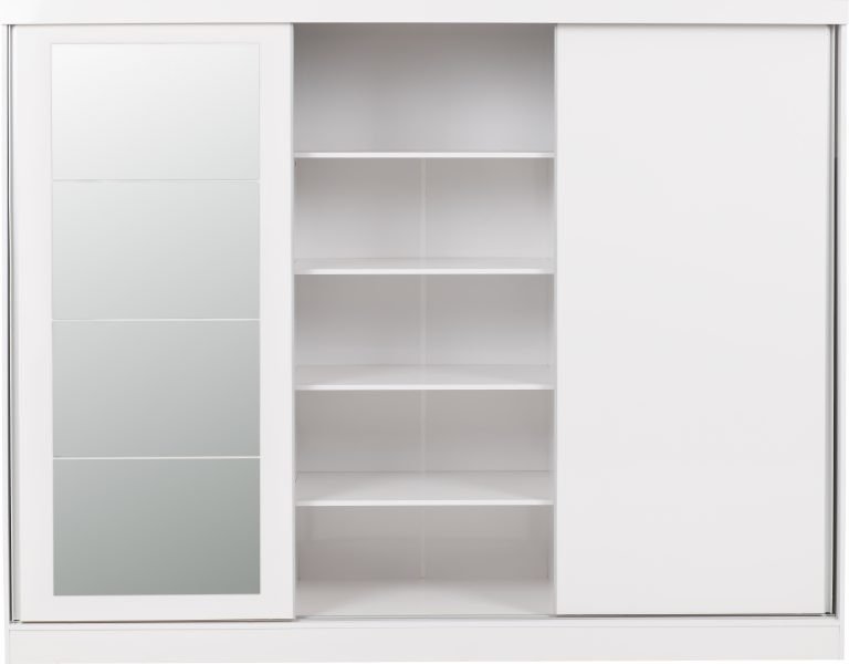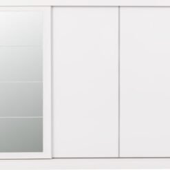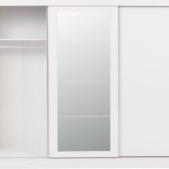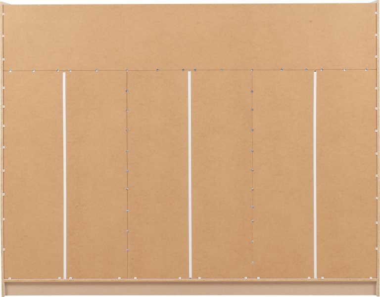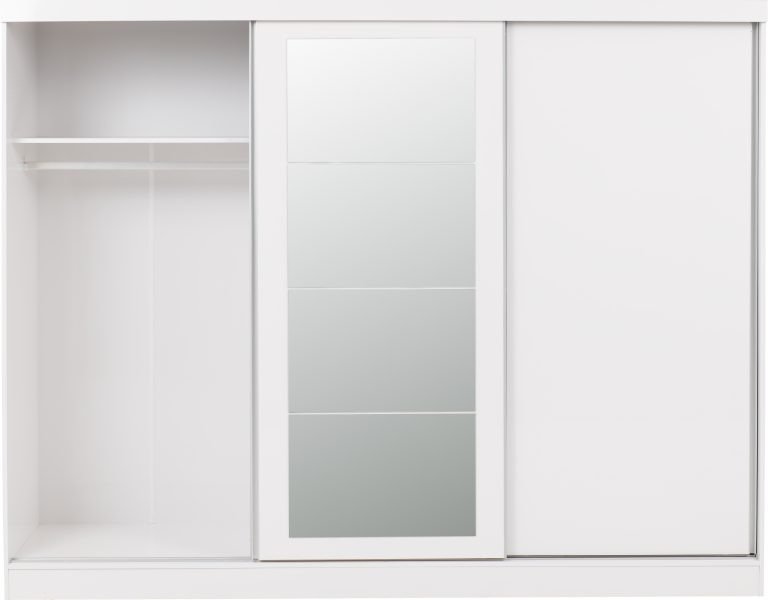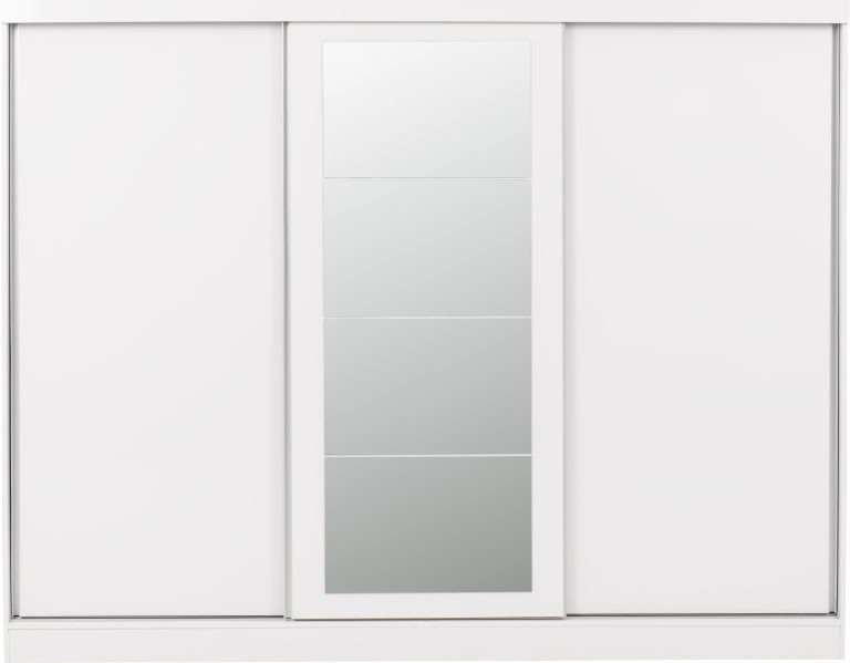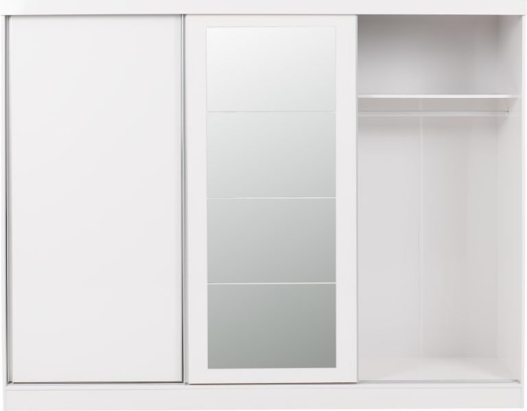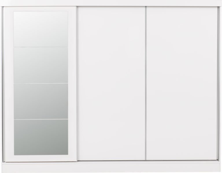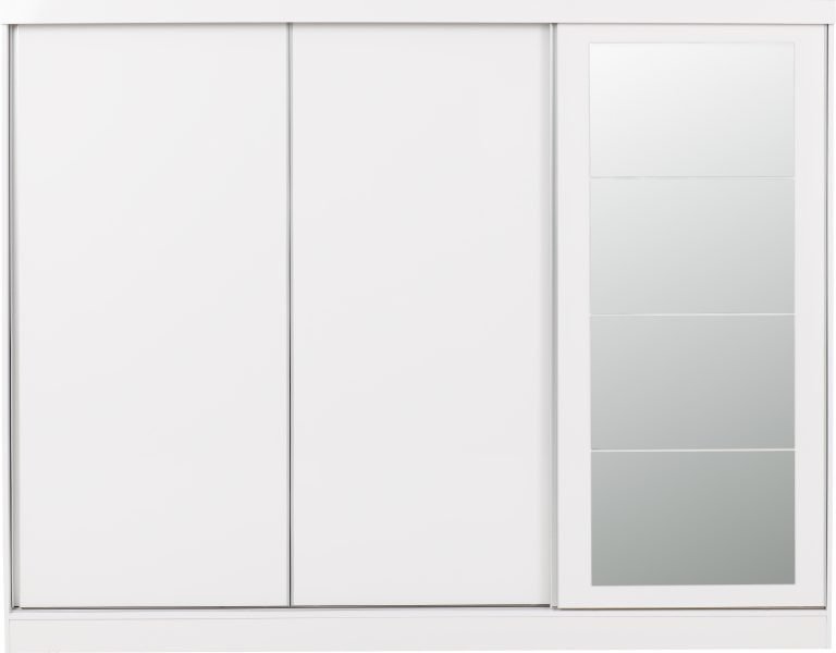 COMPOSITE BOARD FRAME, PLASTIC VENEER, MDF BACK PANEL, METAL DOOR DETAILS, METAL HANGING RAIL, PLASTIC DOOR DETAILS, PLASTIC BACK PANEL STRIP, PLASTIC FEET, MIRRORED GLASS