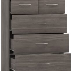 The Nevada 3+2 Drawer Chest combines modern design, durability and everyday practicality, making it a stylish addition to any contemporary home. Black Wood Grain