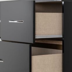 COMPOSITE BOARD, PLASTIC VENEER, MDF BACK PANEL, MDF DRAWER BASE, METAL HANDLE, METAL DRAWER RUNNERS, PLASTIC FEET