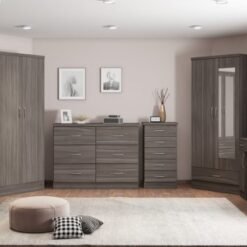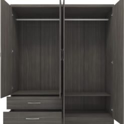 Nevada 4 Door 2 Drawer Mirrored Wardrobe – Black Wood Grain.