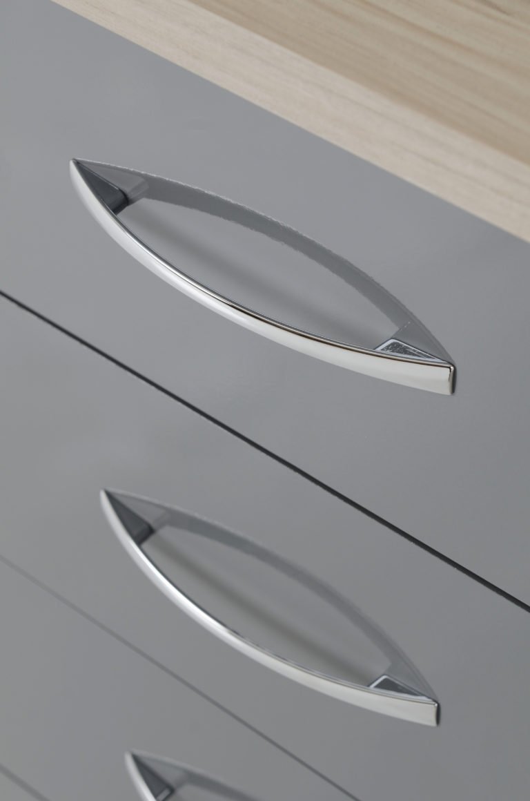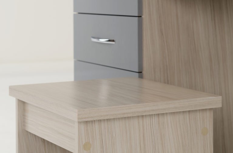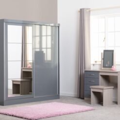 The Nevada 4 Drawer Dressing Table Set combines modern design, durability and everyday practicality, making it a stylish addition to any contemporary home. Grey Gloss/Light Oak Effect Veneer