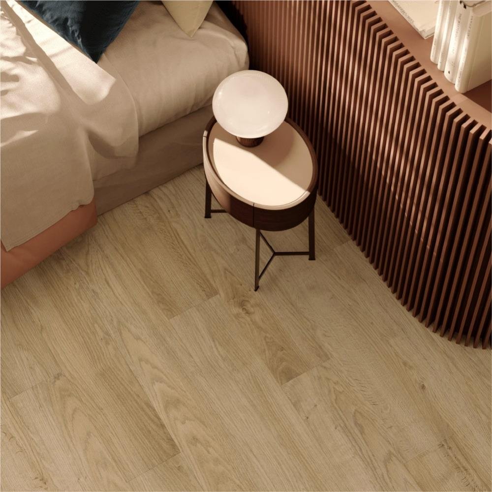 The light natural wood-effect finish enhances the sense of space and works beautifully in both modern and traditional interiors. Built with an AC4 wear rating, this flooring is ideal for busy homes and high-traffic areas. Its impressive 100-hour water-resistant protection provides added peace of mind for everyday living.