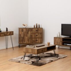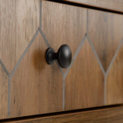 COMPOSITE BOARD, PAPER VENEER, MDF BACK PANEL, MDF DRAWER BASE, METAL HANDLES, METAL HINGES, METAL DRAWER RUNNERS