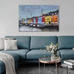 Introducing the Port bhád Beag which translated from irish to english means ”Small Fishing Village”an exquisite piece of 3D Metal and Wood Wall Decor that brings a touch of rustic charm and modern artistry to your home. This stunning 90×60 cm wall art features a beautiful collection of coloured house meticulously designed to captivate and inspire.