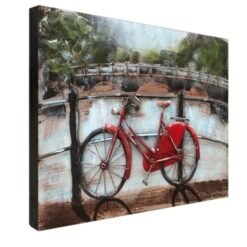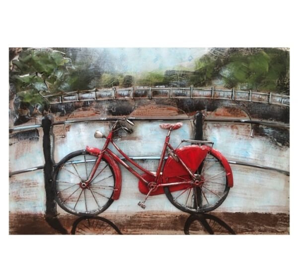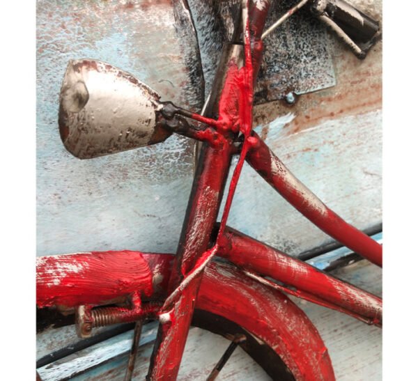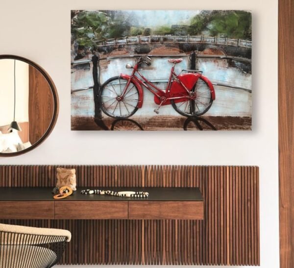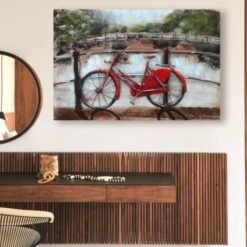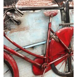 Introducing the FAM-0669, an exquisite piece of 3D Metal and Wood Wall Decor that brings a touch of rustic charm and modern artistry to your home. This stunning 90×60 cm wall art features a beautiful red bicycle, meticulously designed to captivate and inspire.