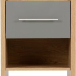 Seville 1 Drawer Bedside Cabinet – Grey High Gloss / Light Oak Effect