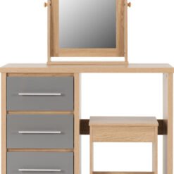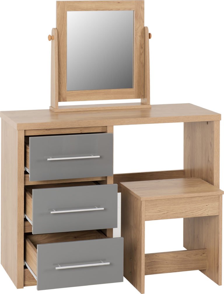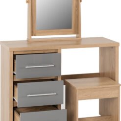 Seville 3 Drawer Dressing Table Set – Grey High Gloss/Light Oak Effect Veneer.