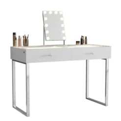 VANITII Alice Vanity 2 Drawer Desk Chrome Legs