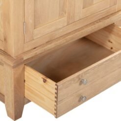 Finished in a warm natural oak tone, this wardrobe highlights the beauty of solid wood while bringing a bright and welcoming feel to your space. Its compact two-door design makes it ideal for smaller rooms while still providing generous hanging space and additional drawer storage.